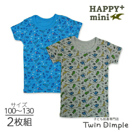 男児半袖シャツ2枚組(スペースシャトル柄/オシャレ恐竜柄)(8658/8659)100/110/120/130 メール便OK 綿100%